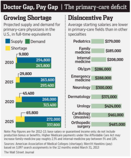 Furthermore, by 2020, the Association of American Medical Colleges estimates, there will be 45,000 fewer primary-care doctors than the U.S. needs. “For the last 13 years, very few students have been going into it,” says Patrick Dowling, chairman of the department of family medicine at the University of California-Los Angeles’s David Geffen School of Medicine.